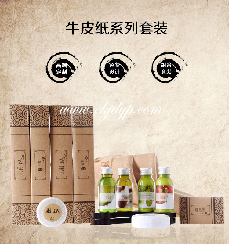 酒店一次性用品宾馆洗漱用品套装高档牛皮纸卡盒包装批发可定制 尊敬的客户: 您好!本款产品为定制品,最低起订量为5000.