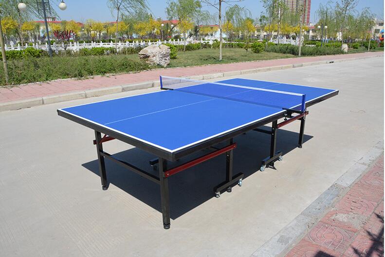 石家庄平山学校室外乒乓球台厂家,标准的乒乓球台有两块组成,每块长1.37米,总长2.74米,台面宽为1.525米,乒乓球台标2.74*1.525米,网长是1.83米,网高0.1525米,球台与地面距离是0.76米,台面四边涂上0.02米宽的白线,即,沿每个2.74米的台面边缘各有一条2厘米宽的白色边线,沿每个1.525米的台面边缘各有一条2厘米宽的白色端线。台面中间应有一条3毫米宽与球台长边平行的白色中线将台面划分为两个相等的“半区”。