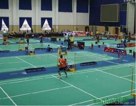 1、WanAo万奥羽毛球场地地板是由PVC耐磨层、玻璃纤维加强层和PVC发泡缓冲层组成。
