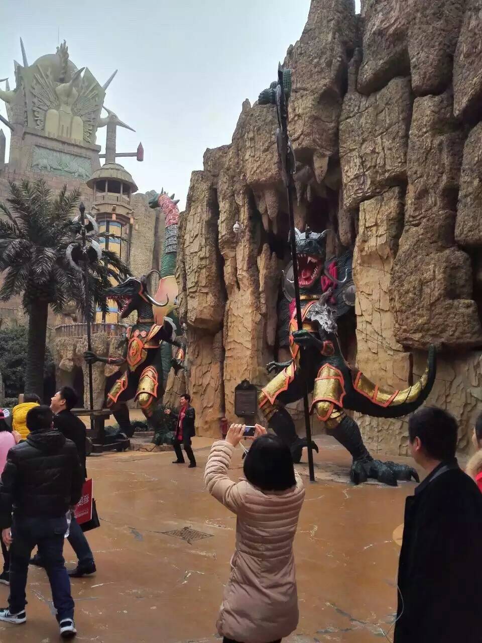 安徽宿州塑石假山、溶洞、仿真树、仿木栏杆、压模地坪、彩色地坪