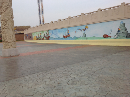 安徽亳州压模地坪、仿木栏杆、塑石假山等景观包装工程
