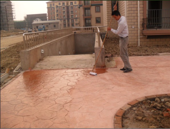 2、鹤石彩色脱模粉是一种有色、憎水的轻质粉末,仅用15公斤就能覆盖100平米的彩色压模地坪,同时,它具有很强的脱模效用,避免了模具压印纹理的时候出现的沾模现象,使地坪模具能够轻易地反复脱模而不破坏彩色混凝土表面。鹤石脱模粉和鹤石彩色强化料的配套使用还能对彩色压模地坪起到二次着色和养护的作用,在彩色压模地坪涂刷地坪专用保护剂的时候在彩色压模地坪表面形成非常自然的颜色渐变,使彩色压模地坪凹凸纹理的立体感得到进一步的增强。