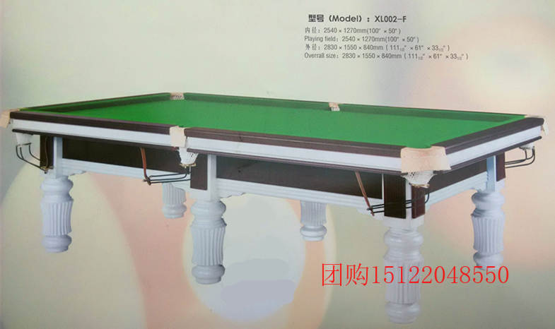 采用高品质实木、纯天然大理石青石板、优质钢材制作的台球桌滑道,上海顺毛台泥、普通金杯球一副、球杆两只、架杆一只、三脚架一个、巧克粉一盒。