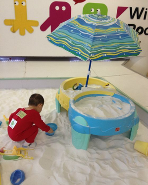 壁画。室内儿童沙滩乐园用的白沙子采用特殊工艺加工 再经筛选、滚磨、清洗、消毒、烘干等多道工序