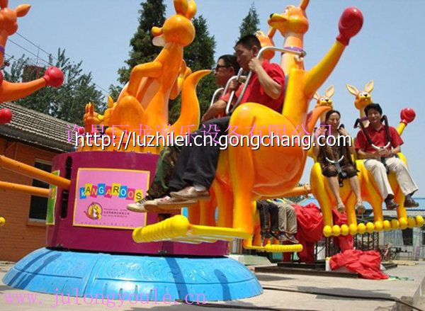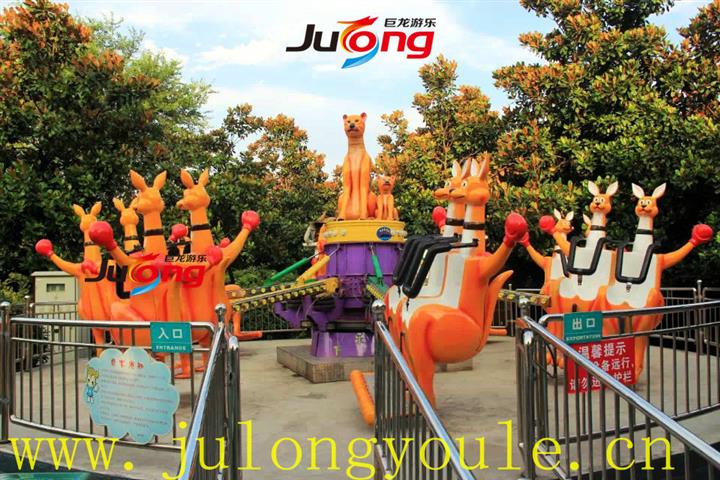 袋鼠跳是我公司研制的一种新型弹跳类游乐设备,产品座舱造型由六组袋鼠组成,造型可爱生动,童趣十足,适合不同年龄阶段的人乘坐,该游乐设施运行时,伴随奇妙的音乐,座舱会随着设备的旋转而上下跳动,犹如坐在袋鼠的肚囊中一般,给你不一样的乘坐体验和乐趣。