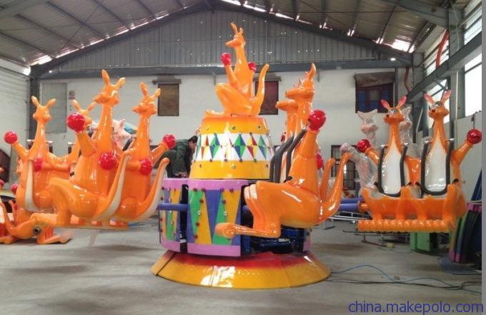 弹跳袋鼠又叫袋鼠跳、欢乐袋鼠、袋鼠跳跳乐,属于自控飞机类游乐设备,它最吸引人的就是造型,八组袋鼠一起弹跳,童趣十足。