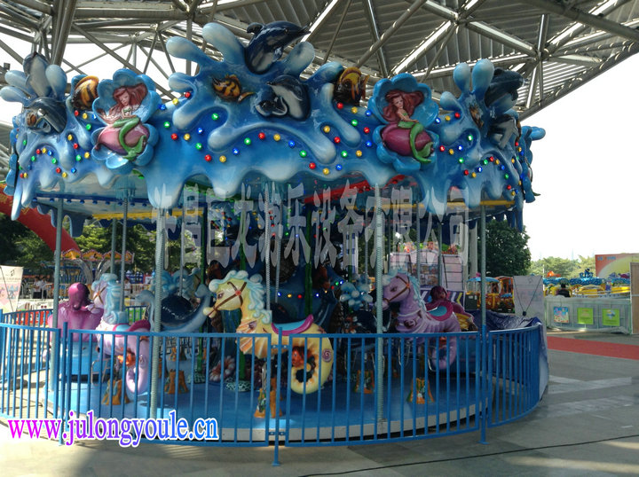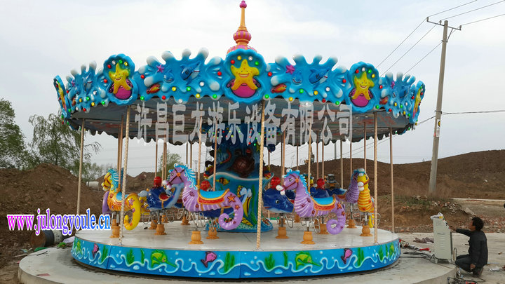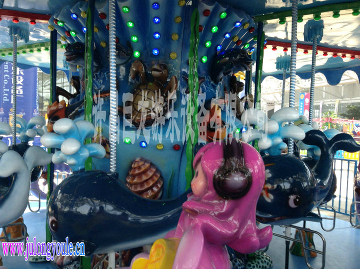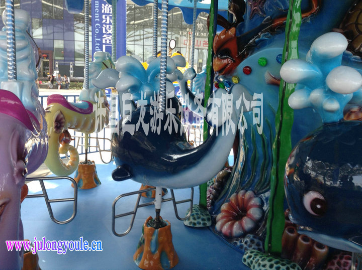 转马是转马类游艺机的一种,它采用变频调速,起动、停止较平稳;以新颖的外观设计,深受娱乐爱好者及广大游客的青睐。以不同姿态“海洋动物”的造型,吸引青少年及小朋友享受“骑马”狂奔的感觉。且由于其速度较慢,特别适合儿童娱乐。其造型美观、占地面积小、安装拆迁方便、造合于各类中小型游乐场所。是公园、游乐场及超级商场等休闲娱乐场所投资的好项目之一。