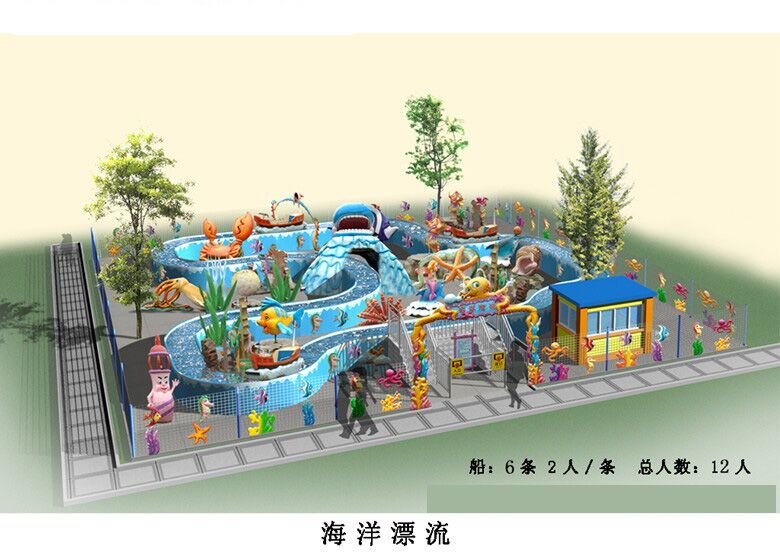 “海洋漂流”是许昌巨龙游乐设备有限公司自主生产的一款以漂流为主题的水上儿童游乐设施。此款设备可以说是花果山漂流的缩小版,占地380平米,也可以根据场地实际面积设计安装。海洋漂流的水道长度长达80米,配备8条漂亮的卡通游船,可沿环形水道自行漂流,水道起伏有致,可使孩子们在安全的环境里感受峡谷漂流的刺激和新奇,充满了神秘色彩!