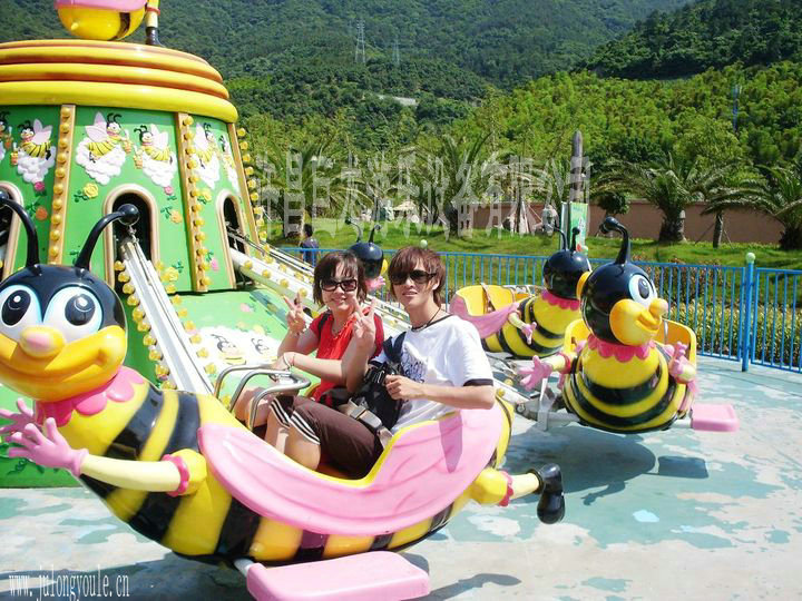 "自控小蜜蜂”是一款将旋转与升降完美结合在一起的游乐设备,它的外形是以小蜜蜂的卡通造型而精心打造,有一种回归大自然的感觉,四周都是花草,座在小蜜蜂的坐舱里,就像进入了另外一个童话世界一般!“自控小蜜蜂”是由机械、气动与油压和电气系统组成,是一种绕垂直轴中心旋转、升降自由的游乐设备。它具有高空驾驶之惊险,自由之悠闲,是一种游客可以自己控制升降的现代游乐设施,小蜜蜂围绕中心大蜜蜂旋转,并逐渐上升,游客在飞行中紧握操纵杆随意升降,互相追逐、射击,形象逼真的空战声光效果,使游客能充分体验到飞机在空中翱翔的穿越之感,而机臂的牵引和离心力的冲击,又使乘客在绝对安全的环境里尽情享受飞翔的快感和刺激,令人乐而忘返,该游乐设备不但性能优异,操作简单,而且有着新颖的造型、华丽迷人的彩灯装饰,逼真刺激的空战音响效果,深受广大游客的喜爱。旋转小蜜蜂游乐设施设备也叫自控小蜜蜂,它可爱卡通的形象外观更引人注目。这款设备属于旋转类的设备,蜜蜂在其旋转的同时又伴随着身体的上升和下降,坐在上面犹如在飞翔一般,惬意轻松和快乐!这款自控小蜜蜂,绝对是一款值得公园、游乐场、室外投资的一款新颖游乐设备!
