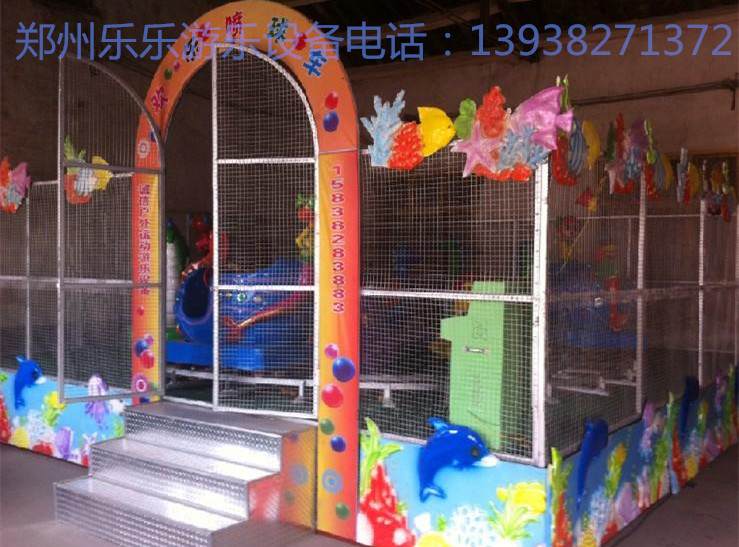“欢乐喷球车”设备内的几个火山口在设备启动时同时自动循环喷出不少小球,并有设备自带的动感音乐配合下,这时孩子就会过来看这是什么东西,激发了他们的探索欲,同时它打破了一般轨道类游乐设备的单一乘坐的游玩方式,它不光可以乘坐小车沿轨道行进,还可同时用抄子抄球,还可以用网打球,用手接球。在众多小球喷出的同时锻炼儿童的手眼协调能力,在小球落下的瞬间把球接住,连大人也乐此不疲的接球玩,游玩的过程充满欢声笑语。
