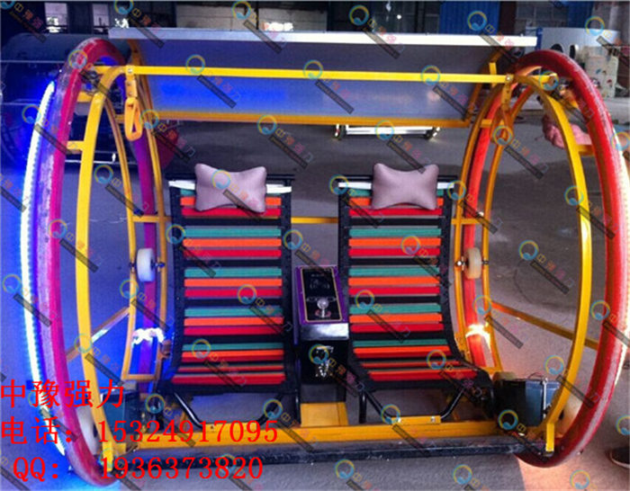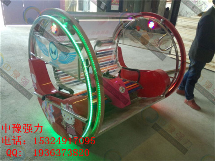 属于一种依靠电瓶做动力运行的新型游乐设备,产品说明:逍遥车又叫乐吧车。逍遥车采用双电机电动控制器,不但可以前后左右行驶而且能原地360度旋转行驶,控制完全由一个手柄操作,松开手柄即可快速停止。逍遥车还配有MP3音乐播放系统和彩灯装饰功能,所以又称为乐吧车。外观豪华新颖,操作简单方便,让游客能体验到前所未有的游玩乐趣而流连忘返。逍遥车广泛适用于广场、公园、游乐园、景点、购物广场等。这种新型游乐设备由于适用范围广、操作简单、可玩性强、经济效益好而深受市场的欢迎。