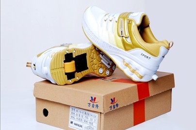 乍眼看去,暴走鞋(飞行鞋)的外貌与普通运动鞋没有什么区别。翻转鞋底,你便会发现,鞋底的后跟部位比普通鞋多了一个小单轮。可别小看这个小单轮,它可是用飞机轮胎的原料制造的,非常坚固耐磨,也是良好的制动装置设备,使滑行更具安全感。据称,学会使用暴走鞋娱乐仅需1天时间,每只鞋靠一个轱辘滑行。