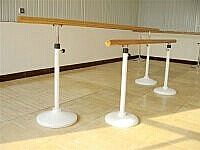 我公司生产的舞蹈把杆系列产品重量25公斤,立柱为60无缝电镀钢管,电镀处理。内有35实心圆钢作升降杆,带碰珠升降、双扣锁实。底盘45cm,表面喷塑处理。底座升降高度为800至1100,带碰珠升降。 移动式小底座:重量17.5KG,表面为电镀处理。底座升降高度为800至1100,插销式调节。把杆直经为5.5厘米,水曲柳材质,内有2.2cm直径锰钢,带弹性适用于儿童和成年人使用。