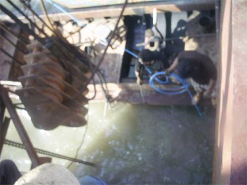 潜水工程:采取一定方式,按照一定的方式和步骤,主动地从空气中穿过空气-水界面没入水面以下、向深处进发、到达水底或上睥深度后逗留一段时程从事一定的活动,又从水底或目的深度离开,向浅处返回,经过一定的规程,最后露出水面的全过程,称为潜水。潜水工程:在进入管道安装施工时,当打开井壁取水管安装孔钢板法兰封板时,在井内外水压力作用下,大量沙水涌入井内而无法采用一般在管内人工手掘顶管法安装而及时将密封法兰封闭。·