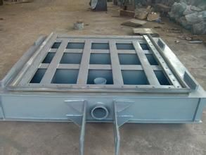 二,?铸铁闸门? 优点:耐腐蚀,防腐性能较好,一次性安装成型,维修费用低,常用于尺寸较小,结构复杂的平面闸阀、蝴蝶闸阀等。铸铁镶铜闸门结构特点和工作原理? 1、组成? 铸铁镶铜闸门由门框、闸板、导轨、密封条、传动螺杆、吊块螺母/吊耳和可调整密封机构等部件组成,其中门框和闸板均由优质灰口铸铁或球墨铸铁制成,导轨左右对称布置且用不锈钢螺栓定位销与门框二侧端部连接(对中小口径的闸门,其导轨可与门框浇注成一体),导轨长度一般为闸门全开启高度的1/2~1/3,因而整体结构强度高、刚性高、耐磨、耐腐蚀性好、承压能力大。?? 2、密封? 铸铁镶铜闸门通过楔块装置的楔紧达到密封,密封材料为铜合金或橡胶,并经精密加工后配研,故密封性好。?? 3、安装? 采用预埋钢板或预埋螺栓式安装,安装、调试、使用、维护方便,使用寿命长。?? 4、?品种规格齐全,适应性广。?5、工作原理? 铸铁镶铜闸门与启闭机配套使用,闸门为工作部分,启闭机为闸门开启与关闭的执行部分,启闭机由人力、电机或气动、液压机构带动传动装置的齿轮、蜗轮蜗杆等运转,驱动传动螺母或螺杆转动使闸轴作垂升降运动,从而开启或关闭闸门,达到?水、关水或调节水位的目的。?? 6、主要技术性能参数? (1)、铸铁镶铜闸门型号与规格?a)方形闸门?MZF?200×200~3500×3500?b)圆形闸门?MZY?DN200~DN3000?AZYDN200~DN2000?c)矩形闸门?MZJ?1000×500~2000×1200?,500×1000~1200×2000??(2)、铸铁镶铜闸门主要性能指标?a)闸门密封面配合间隙≤0.1㎜,密封座厚度大于10㎜。?b)密封面每米长度渗水量:正向≤0.7L/min?·m?反向≤1.25L/min?·m?c)公称压力≤0.1Mpa;密封试验压力0.1Mpa。?d)工作环境:温度-20℃~120℃?湿度:95%?工作介质:水与污水?PH?值:5~10?e)安装位置:正常状态下正向迎水、处于铅垂状态。?f)大工作水头:单向受压:正向:10m?反向:5m?双向受压:均为10m?g)启闭速度:不小于0.2m/min,不大于1.5m/min。