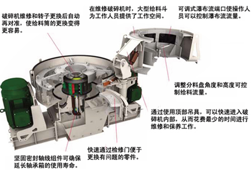机器顶端配备出料口调节装置,可简单快捷调整反击板与板锤间隙,控制出料大小;成品形状呈立方体,无张力裂缝,粒形较好,符合各类砂石骨料的等级标准。