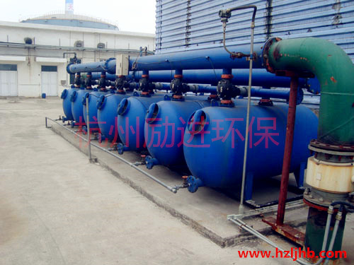 当系统处于过滤状态时,未经过滤的水通过自行研制独的布水器均匀布水,水以层流状态通过滤器内的填料层(精制均粒石英砂/石榴石)。当水流过填料层时,杂质被截留在填料层内。过滤器底部有多个均匀分布的集水器,将过滤后的水均匀地收集并引出,平流过滤,可以使过滤器在流速下过滤,仍可达到较过滤的效果。