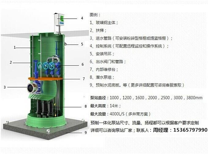 青海西宁一体化预制式泵站产品材质:玻璃钢