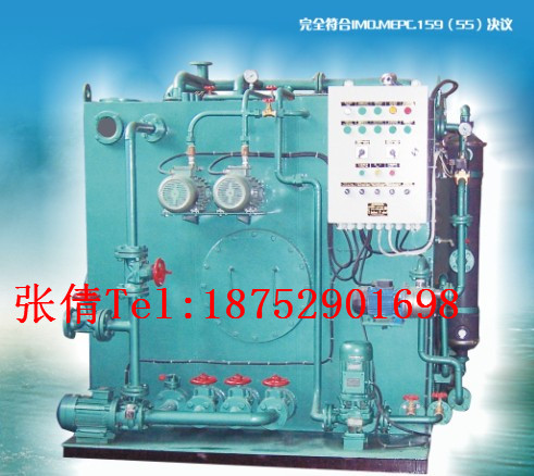 原理概述:本装置将船上产生的生活污水容纳在收集缓冲柜内用粉碎泵进行粉碎,然后进入处理柜内进行“送料-曝气-沉淀-排水”一体化的程序控制处理,再经过膜法MBR渗透处理萃取污水中的滤过水,最后用紫外线消毒,全面达到相关决议所规定的排放标准。本装置采用“内、外置膜”设计,设计更适应船舶的特殊工作条件,便于维修、拆装和保养。装置采用PLC可编程控制器,实现了对水、曝气、沉淀、排水等过程的数字化逻辑控制,适合24h无人机舱,可满足船舶的特殊要求。