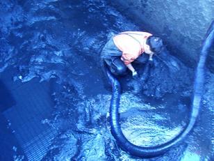 4、稀释污泥。使用高压泵冲稀污泥。清理池底淤泥、杂物。