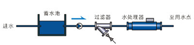 ②.锅炉、换热设备等需处理的结垢系统,特别是换热强度高但对水质要求严格的板式换热器,当进水悬浮物含量小于15mg/L时,“防垢仪”可单独使用,解决防垢、除垢问题;当进水悬浮物含量大于15mg/L时,必须使用时间型软水器一“防垢仪”与过滤器的组合或全程处理器,解决结垢问题。