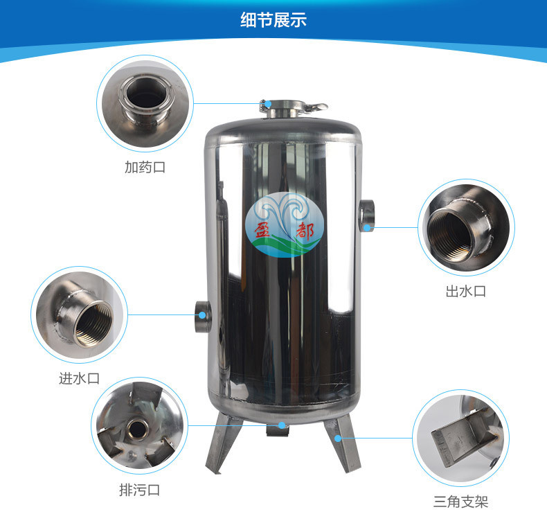 硅磷晶罐是硅磷晶水处理中不可缺少的一种装置,是专门为方便添加硅磷晶设计的容器。 加药罐安装简单方便,可随水自动加药,无需专人值守,不会对原给水设备系统造成压降。 硅磷晶罐可有效防止锅炉、空调系统、换热器管道生锈、结垢,消除锈蚀主水垢引起的漏水、腐蚀等红水、黄水、黑水问题。 我公司硅磷晶罐为304不锈钢制作,美观大方,坚固耐用。日处理水量从10吨到200吨不等,添加硅磷晶从10KG到200KG不等