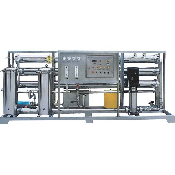 反渗透主机主要由增压泵,膜壳,反渗透膜,控制电路等组成,是整个水处理系统中的核心部分,产水水质的好坏最主要也取决该部分。只要膜的型号及增压泵的型号选取得当,反渗透主机对水中盐分的过滤能力都能达到99%以上,出水电导率可保证在10us/cm(25度)以内。