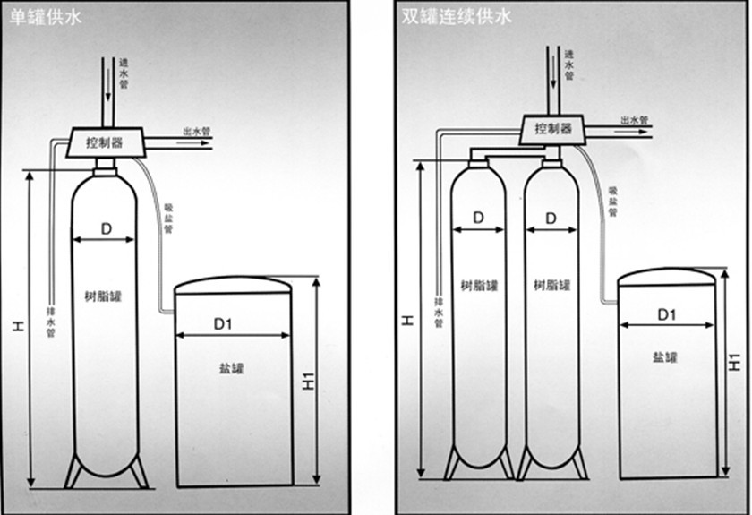 3,双罐流量控制型/多罐流量控制型,一备一用/一备多用(或同时使用分别再生),适用于用水量大,需连续供水的场所。