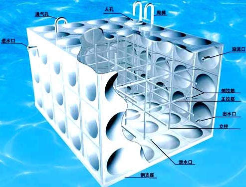 装配式镀锌钢板水箱结构设计主要通过结构强度、刚度计算来确定结构尺寸,设计要求是外形美观、施工方便、整体组装拆卸容易,板块结构采用圆球面形增强,与钢板水箱和混凝土水箱相比他具有自己的特色和创意,装配式镀锌钢板水箱板块四周设有45度和90度的凸缘,组装时不用边角连接件,更具柔韧性和灵活性。