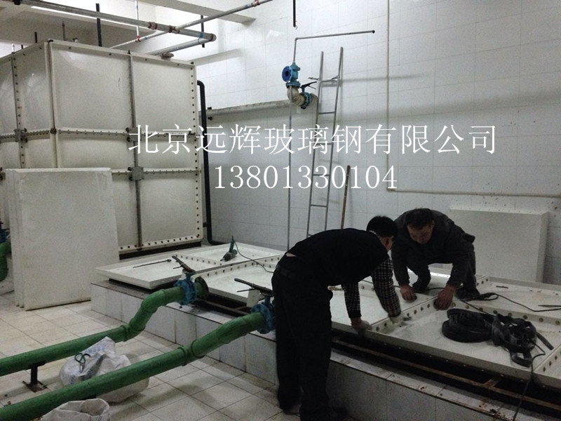 2015年4月位于河北高碑店工地内6*2*2.5玻璃钢水箱正在紧张的安装中。
