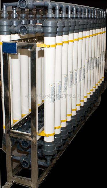 中水回用工艺流程: 原水→格栅→调节池→提升泵→生物反应器→循环泵→膜组件→消毒装置→中水贮池→中水用水系统 中水回用技术特点:(1)能高效地进行固液分离,将废水中的悬浮物质、胶体物质、生物单元流失的微生物菌群与已净化的水分开。分离工艺简单,占地面积小,出水水质好,一般不须经三级处理即可回用。(2)可使生物处理单元内生物量维持在高浓度,使容积负荷大大提高,同时膜分离的高效性,使处理单元水力停留时间大大的缩短,生物反应器的占地面积相应减少。 (3)由于可防止各种微生物菌群的流失,有利于生长速度缓慢的细菌(硝化细菌等)的生长,从而使系统中各种代谢过程顺利进行。(4)使一些大分子难降解有机物的停留时间变长,有利于它们的分解。(5)膜处理技术与其它的过滤分离技术一样,在长期的运转过程中,膜作为一种过滤介质堵塞,膜的通过水量运转时间而逐渐下降有效的反冲洗和化学清洗可减缓膜通量的下降,维持MBR系统的有效使用寿命。(6)MBR技术应用在城市污水处理中,由于其工艺简单,操作方便,可以实现全自动运行管理,在上海污水处理工程中得到了成功应用。中水回用在水资源的多次重复利用,极大地节约了水资源.更为重要的是,中水回用可以增加水资源的可利用总量,从而增强水资源对经济、社会、生态的保障作用,为经济,社会、生态的可持续发展拓展空间。中水回用,实现污水资源化,是目前解决节水治污两大问题的最有效的途径,在水资源严重短缺的当今社会有着重要意义。