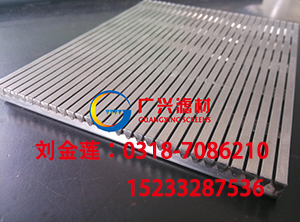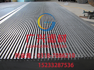 广兴筛板一平二光滑三无毛刺丝无焊点 不锈钢焊接筛板是一种用于筛分过滤的金属网状结构元件,广泛应用于多行业中的筛分、过滤、脱水、脱泥等作业。它具有很高的强度、刚度和承载能力,可以做成各种形状的刚性的筛分过滤装置。 我公司生产的洗煤厂用楔形丝焊接条缝筛板选用优质不锈钢(302、304、304L、316、316L等材质楔形丝),经先进加工工艺焊接而成,工艺严格,保证产品质量,它不同于一般的不锈钢丝编织网,其特点是防滑、硬度强、弹性好、抗压、抗振、耐腐蚀、不易堵塞、不并拢,不受温度影响,使用寿命长,安全可靠,综合成本低等优点。筛缝严格均匀,开孔率高,筛分过滤工艺效果好,而且筛缝可以任意选择,可以加工成各种形状的刚性筛分过滤装置。