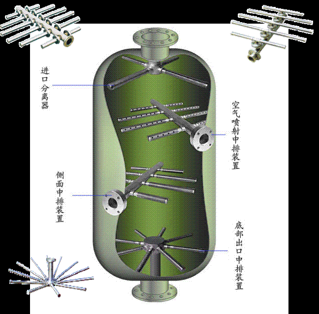 衡水开发区海兴滤材公司生产的不锈钢中排装置有多种形式,有十字型、鱼刺型,直管型,广泛应用于电厂,石油,化工,医药,食品,污水处理,自来水厂等行业的水处理设备领域,是水处理设备补水及水装置中的关键部件,在机械过滤器中应用尤其广泛。我们公司生产的不锈钢梯形绕丝中排装置采用不锈钢梯形绕丝管式滤元作中排器件,可替代不锈钢管上开孔再包涤纶网套老式支管,流通面积大、布水均匀、机械强度高,耐温性、耐压性、抗老性、抗腐蚀性都得到极大提高。并且可以依据树脂大小进行设计。而且采用我公司生产的不锈钢梯形绕丝中排后,不仅设备使用寿命长,运行安全可靠,而且大大降低了检休工作量,包括材料树脂耗损等费用。我们的中排可以用在离子交换器,内冷水微碱化处理设备,也可以用在顺流再生离子交换器的进酸,碱装置。根据用户具体的工艺情况,设计合理的整套进酸、碱装置的阻力系数,使再生液分布均匀。同时也防止了因树脂堵塞进酸,碱装置支管出口小孔,而造成喷射器抽酸、碱困难现象的发生。我们的产品完全按照客户的要求设计制作。材质有:304、321、316、316L、317L、904L等