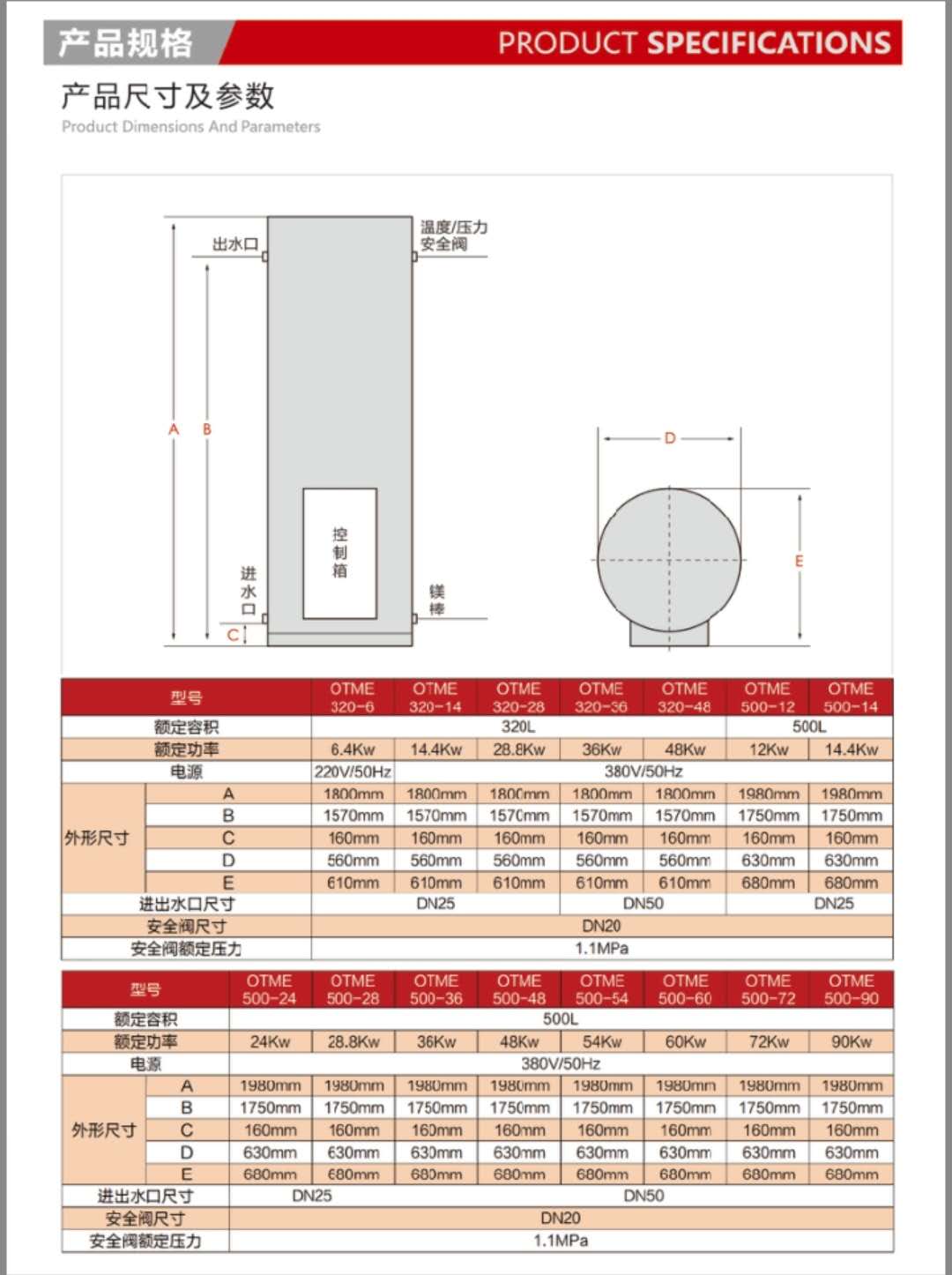 欧特梅尔商用容积式电热水器:占地面积小、大功率、瞬时大量热水供应