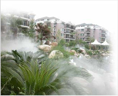 3.降温:气雾状的雾分子,能有效吸收空气热量,降低局部环境温度,其低廉的运营成本,有效的降温效果,已经在世博会及诸多景点进行了广泛的运用和认可,已经成为公共空间、小区等室外降温的新元素。