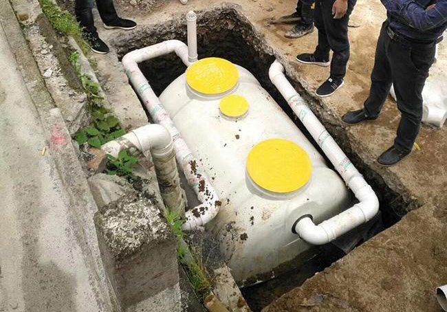 4、玻璃钢化粪池安装施工方便按图纸要求挖好基坑,把玻璃钢化粪池吊入基坑内适当位置,连接好进出水口,一天内化粪池就可以安装完毕,且施工不受气候影响。、处理效果好沉淀池内厌氧生物填料和挂膜填料系统的应用,截留了更多的生物量,污水处理能力比同等容积的传统化粪池提高了一倍以上。