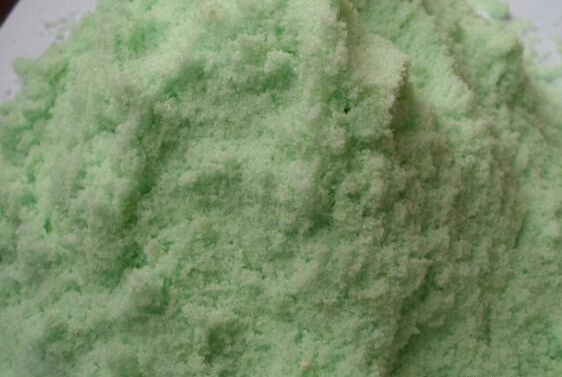 硫酸亚铁为蓝绿色单斜结晶颗粒,无气味。无水FeSO4是白色粉末,含结晶水的FeSO4是浅绿色晶体,俗称“绿矾”,溶于水,其水溶液呈浅绿色。在干燥的空气中易风化,遇潮后其表面氧化成棕色碱式硫酸铁。硫酸亚铁具有良好的絮凝作用,混凝颗粒大,沉降快,除色效果好,成本低。