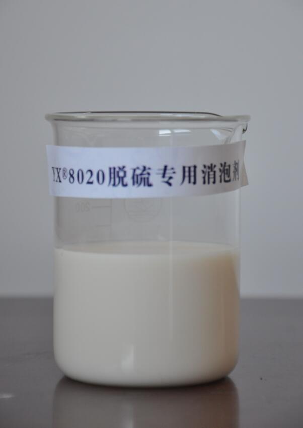 YX®8020脱硫专用消泡剂是针对火电厂烟气脱硫开发的另一种消泡剂,其成分主要有改性聚硅氧烷、分散助剂、非离子表面活性剂等物质。该产品具有良好的水中分散性,并能与浆液很好的相溶,不易破乳漂油,能够快速降低浆液表面张力。能够有效地消除泡沫和长时间地抑制泡沫的产生。