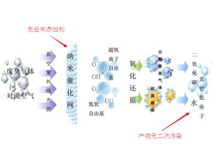 半导体光催化具有氧化性极强的特点,对臭气难以氧化的某些有机物如三氯甲烷、四氯化碳、六氯苯都能有效的加以氧化分解,最终还原成H2O和CO2,所以对 难以降解的有机物具有特别的意义,光催化的有效氧化剂是氢氧自由基(OH-),(OH-)的氧化性高于常见的臭氧、双氧水、高锰酸钾、次氯酸等。