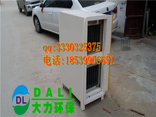 大力系列油烟净化器为二级式静电吸附型,用来去除细微粒径的碳氢化合物和其它空气中的杂粒。它的二级式是指电离段与收集段,每个电离段由一系列钨钢线组成,安装在一系列接地板中间,并接通高压直流电。大气中的微粒在通过电离器的强力静电场时,被电离并带有正或负电荷。