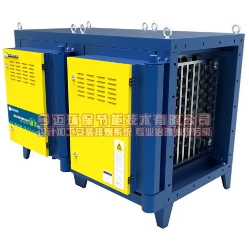 其工作原理是:油烟空气经过特制的S型挡板,均衡惯性碰撞分离,去除粗大油烟颗粒,进入高压静电场,使通过的油雾粒子大量的吸附在集尘板上,再经过模块化金属丝网及活性炭过滤吸附组合,去除最后的剩余物质及异味,排出净化后的洁净空气。