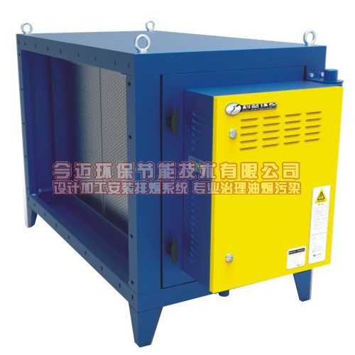 采用支流叠加脉冲等离子电源和齿板结构电场组合形成,产生电晕放电,从而获得高能等离子体。厨房油烟在高能等离子体的作用下,使小颗粒油滴瞬间凝结并成大颗粒而被收集在集油板上,并在等离子体的轰击下沉降到油槽内。与此同时,油烟废气中的大部分um级油污微粒、VOC、有机物质和焦油味、辛辣味等多种异味则被等离子降解,从而保证了油烟的净化效率,异味降解率和较长的清洗周期。