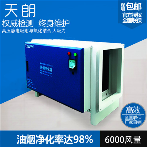 1、天朗静电油烟净化器的电场使用板板,使静电场能均匀地达到最大的平均电场强度,极大的增加了电场净化面积,使电场与油烟粒子结合作用的时间更长,从而决定了设备具有极高的除油烟效率;