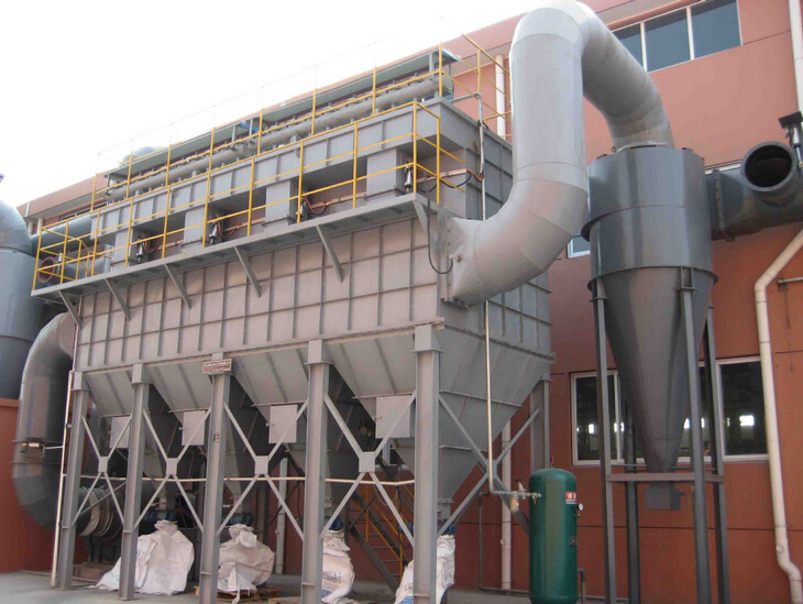反吹风布袋除尘器采用内滤下进风形式,采用三状态反吹风清灰。反吹风袋收尘器采用框架式钢结构,采用除尘滤袋吊挂张紧装置。设备本体、灰斗、进风系统。