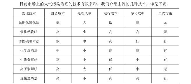 (1)光催化氧化适合在常温下将废臭气体完全氧化成无毒无害的物质,适合处理高浓度、气量大、稳定性强的有毒有害气体。
