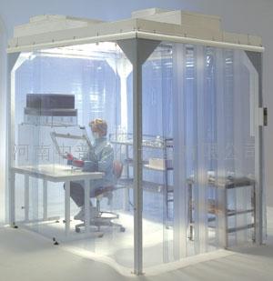 四周围用防静电垂帘(或钢化玻璃),防静电效果好、透明度高、网格清晰、柔韧度好、不变形、不易老化;采用离心风机,具有长寿命、低噪声、免维护、震动小、可无级变速等特性,风机质量可靠,工作寿命长,加上独特的风道设计,大大提高了风机的效率、降低了噪声!内部净化级别可达100-100K级;特别适用于车间内局部净化级别要求高的区域,如流水线作业区域。.内部采用净化室专用净化灯,不产尘