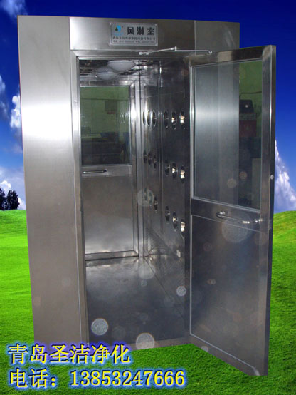 风淋室就是一个洁净的小房间,它自带风机,风机的高速风量经过高效过滤器过滤后,可以有效的去除工作人员及货物表面的尘埃粒子,能有效防止洁净室的二次污染。