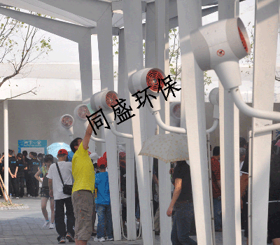 喷雾降温装置可应用场所:公交站台 小区 广场 步行街 旅游景点 公园 游乐场 车间 养殖场 工业车间等