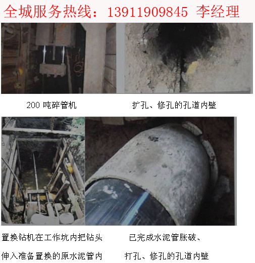 4、非开挖修复管道: 采用定向钻机和夯管锤进行新建管线的铺设、碎管、维修改造和彻底“清底”(池内所有污物) 石景山广宁抽雨污池139一1190一9845