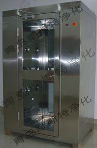 风淋室的作用: 风淋室是人员进入洁洁净室无尘车间所必备的净化设备,通用性强,可与所有的洁净室和洁净厂房配套使用,工作人员进入车间时,必须通过此设备,用强劲洁净的空气,由可旋转喷嘴从各个方向喷射至人身上,有效而迅速清除去附着在衣服上的灰尘、头发、发屑等杂物,它可以减少人进出洁净室所带来的污染问题。风淋室的两道门电子互锁,可以兼起气闸室的作用,阻止外界污染和未被净化的空气进入洁净区域。杜绝工作人员将头发,灰尘、细菌带入车间,达到工作场地严格的无尘净化标准,生产出高质量的产品